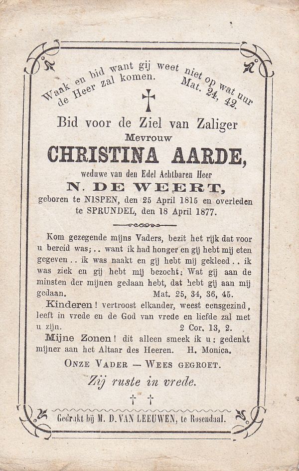 | Catharina | van | Zundert | 1850 | 1913 | |