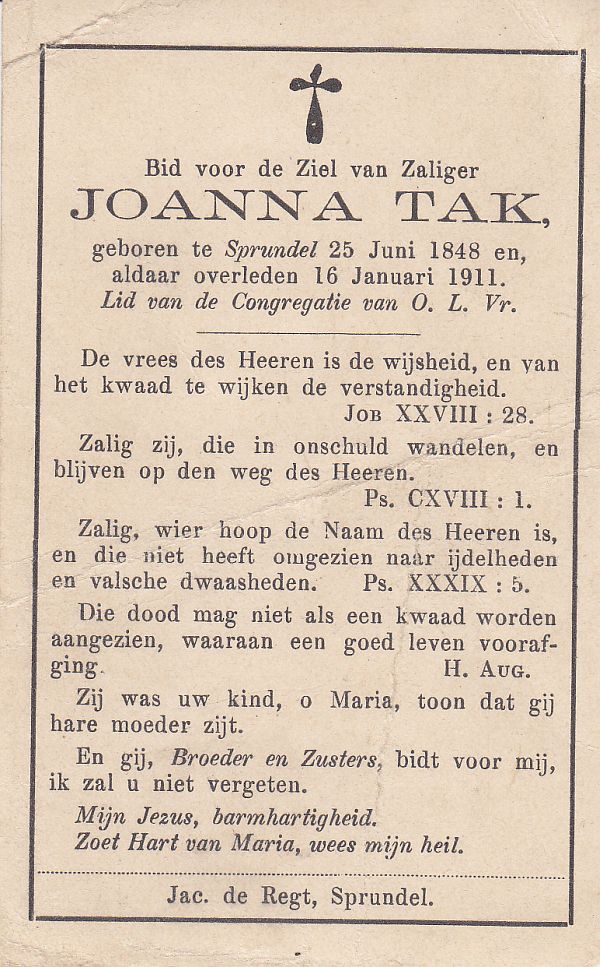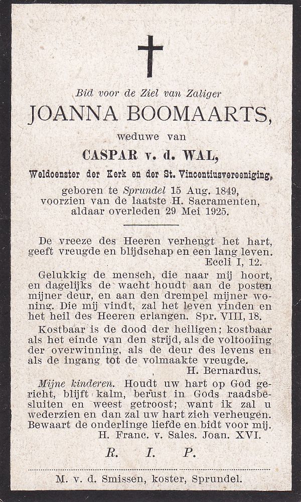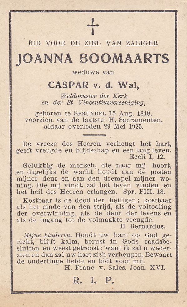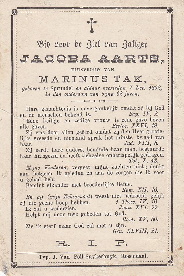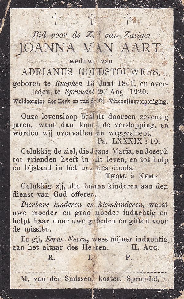 | Joanna | | Aarts | 1843 | 1921 | |