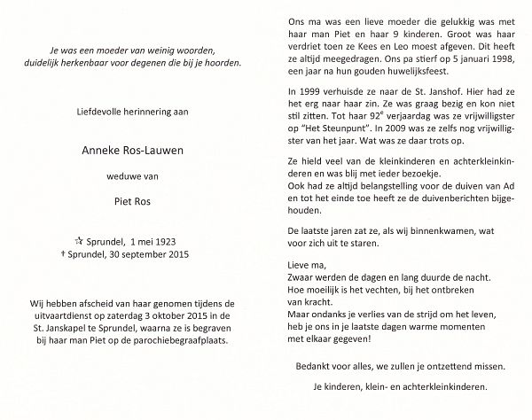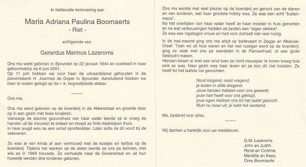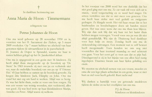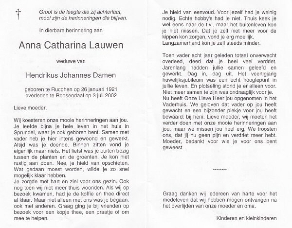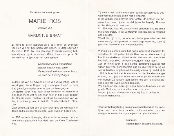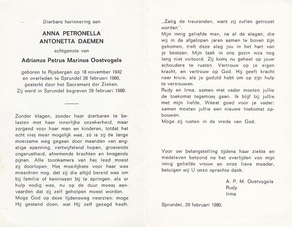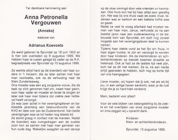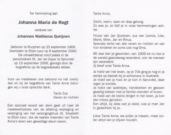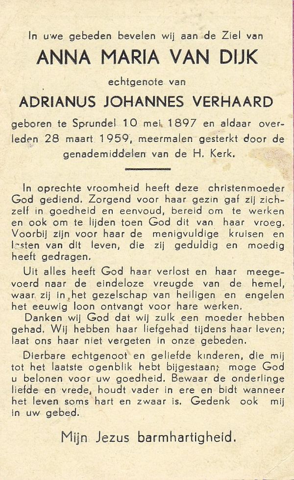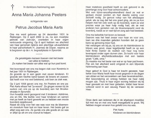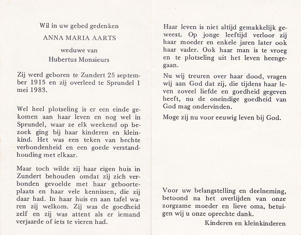 | Anna Maria | | Aarts | 1915 | 1983 | |