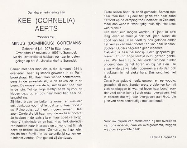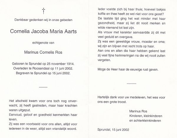 | Cornelia Jacoba Maria | | Aarts | 1914 | 2002 | |