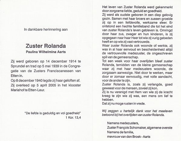 | Paulina Wilhelmina | | Aarts | 1914 | 2005 | |