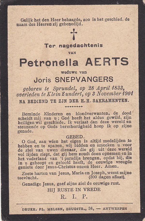| Petronella | | Aerts | 1833 | 1901 | |