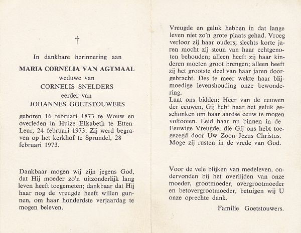 | Maria Cornelia | van | Agtmaal | 1873 | 1973 | |