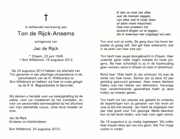 | Ton | | Ansems | 1949 | 2012 | |