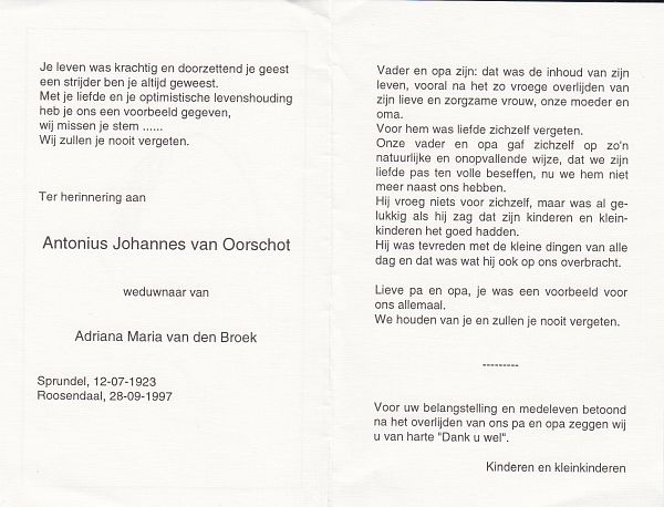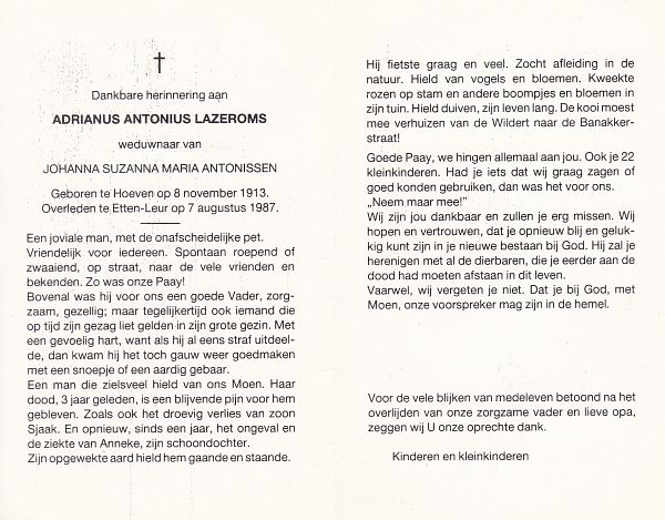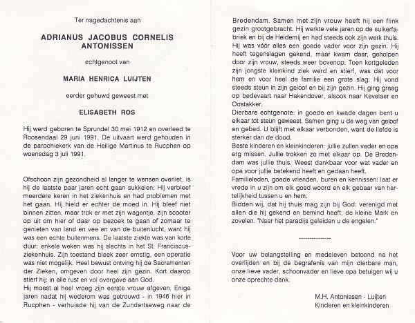 | Adrianus Johannes | | Antonissen | 1907 | 1990 | |