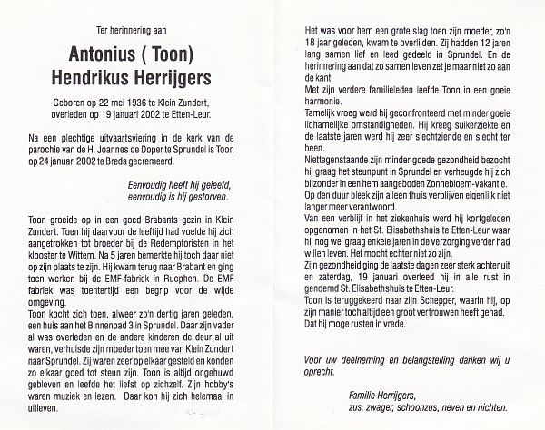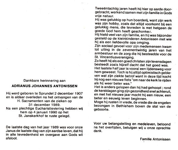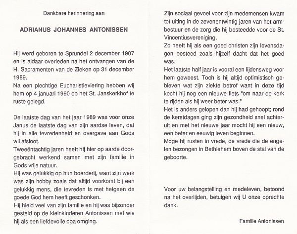 | Adrianus Johannes | | Antonissen | 1907 | 1989 | |