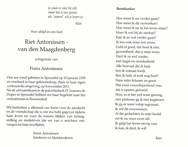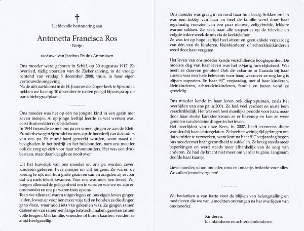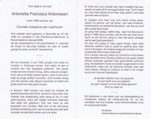| Antonetta Francisca | | Antonissen | 1920 | 2006 | |