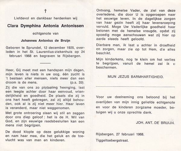 | Clara Dymphina Antonia | | Antonissen | 1925 | 1968 | |