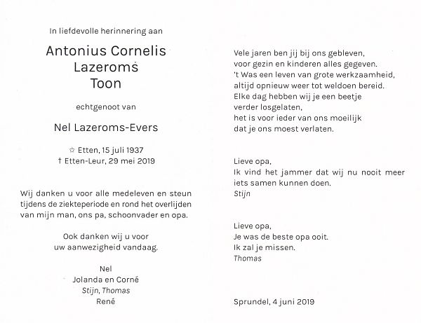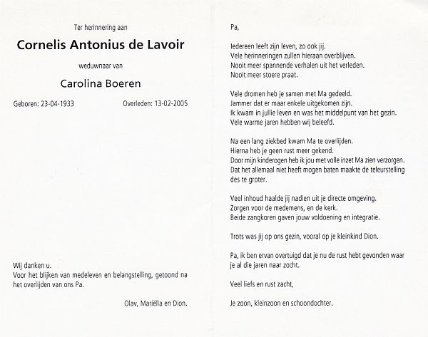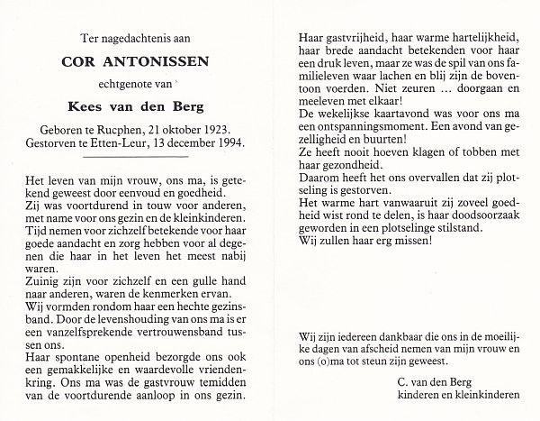 | Cor | | Antonissen | 1923 | 1994 | |