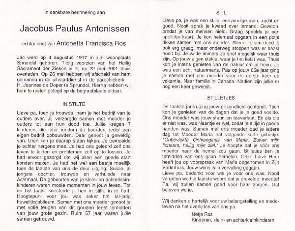 | Jacobus Paulus | | Antonissen | 1917 | 2001 | |