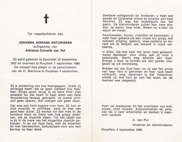 | Johanna Adriana | | Antonissen | 1922 | 1980 | |
