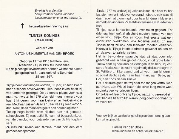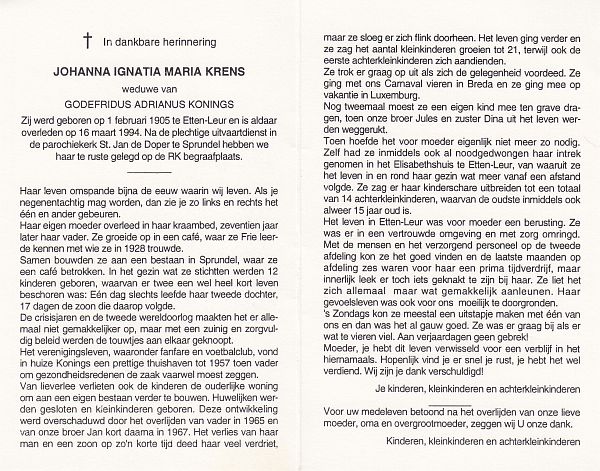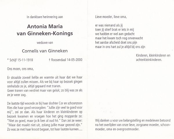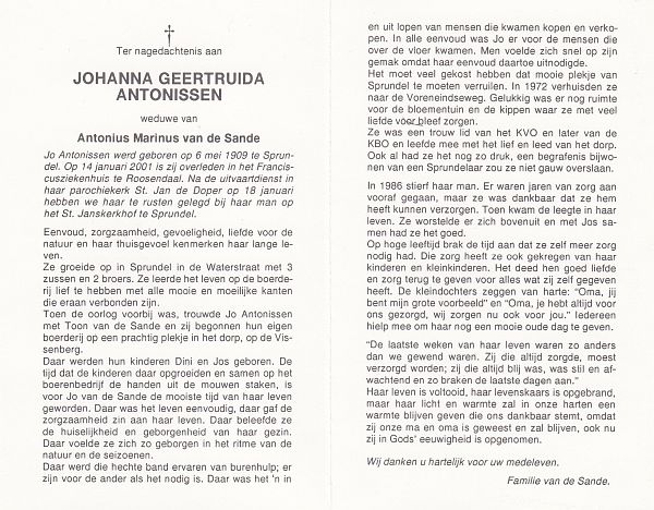 | Johanna Geertruida | | Antonissen | 1909 | 2001 | |