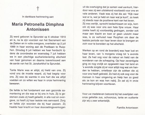 | Maria Petronella Dimphna | | Antonissen | 1910 | 1999 | |