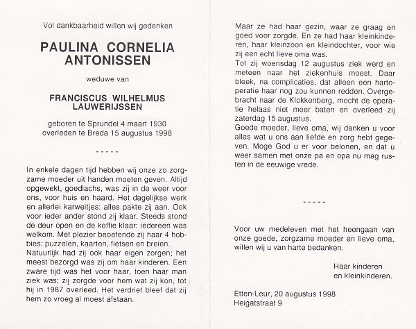 | Paulina Cornelia | | Antonissen | 1930 | 1998 | |