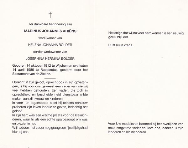 | Marinus Johannes | | Ariëns | 1912 | 1986 | |