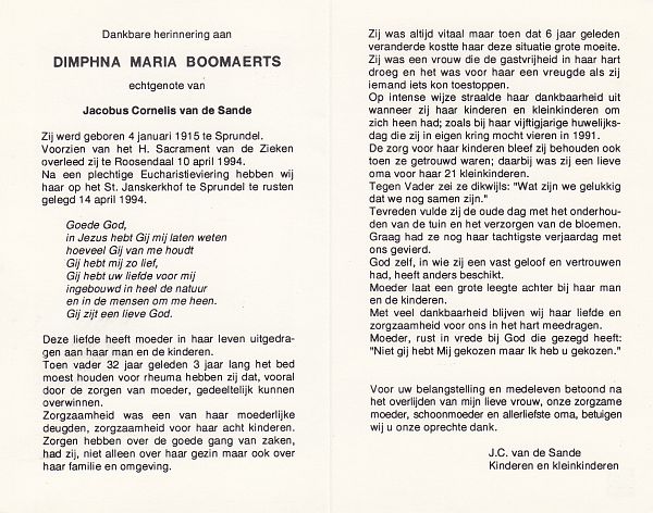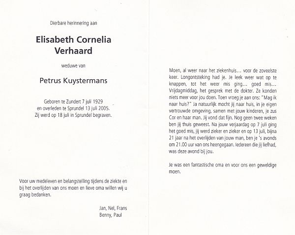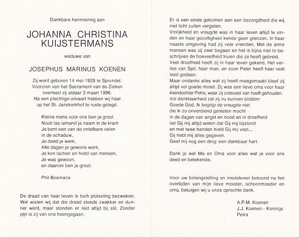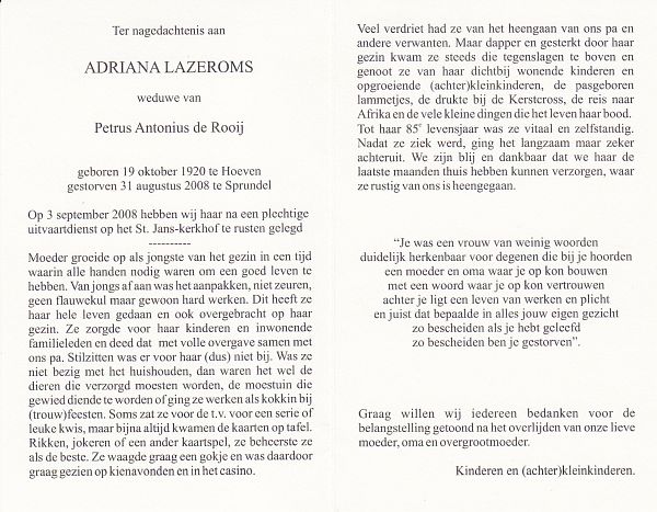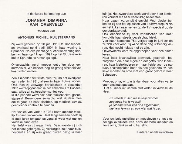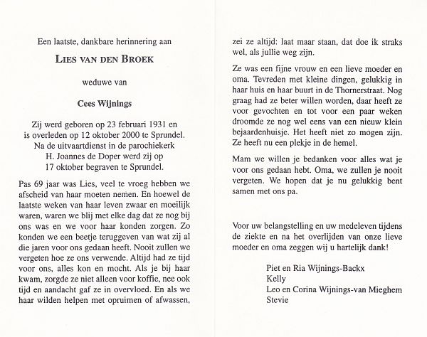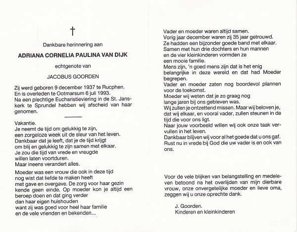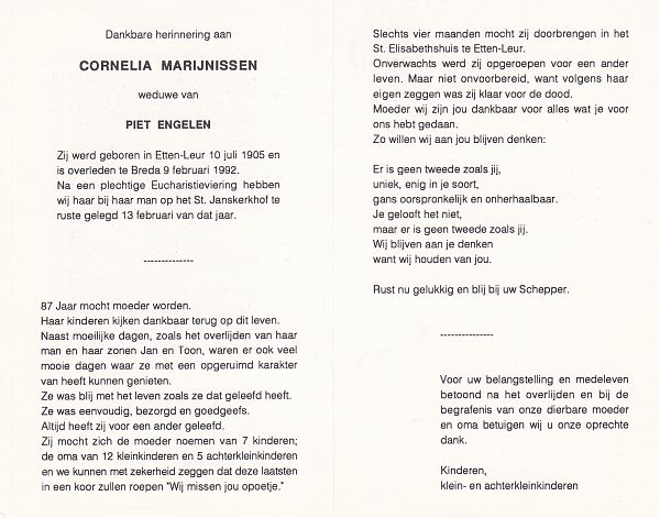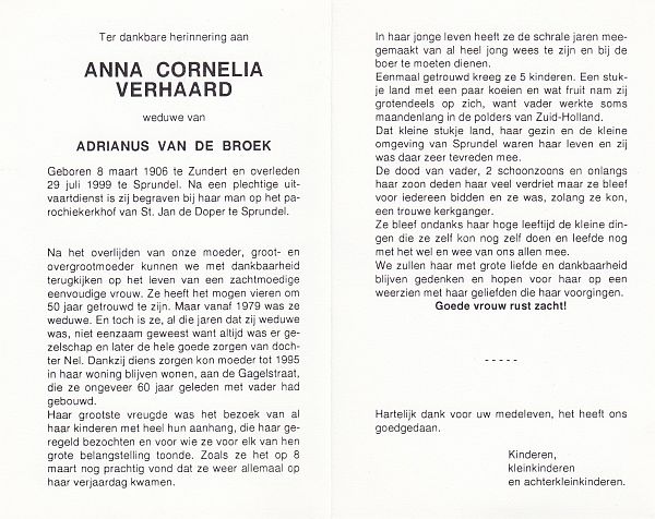 | Cornelia Johanna | van | Zundert | 1913 | 1993 | |