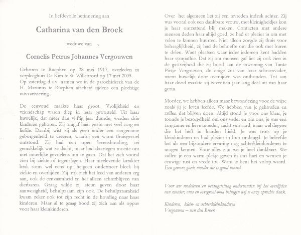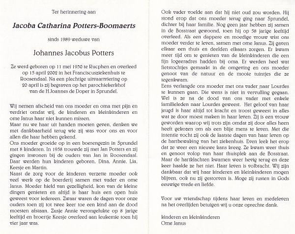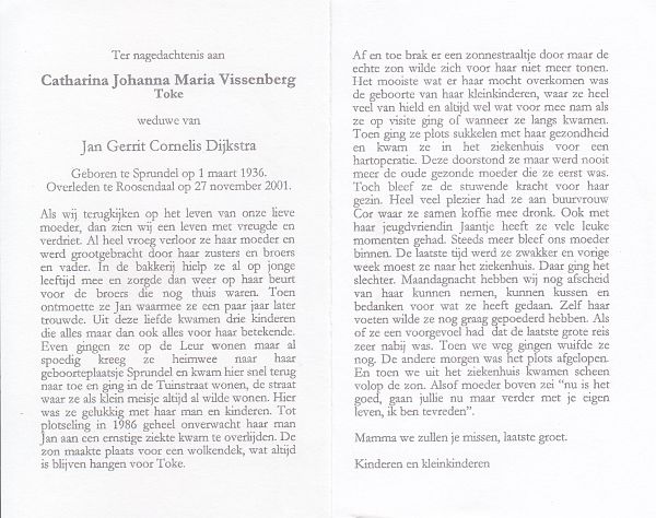 | Catharina Johanna Maria | | Vissenberg | 1936 | 2001 | |