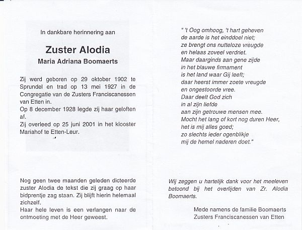| Adriana Maria | | Aarts | 1877 | 1959 | |