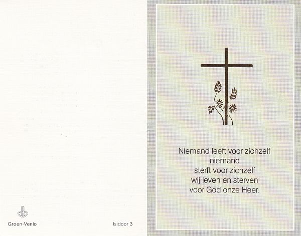 | Johannes | | Vissenberg | 1922 | 1993 | |