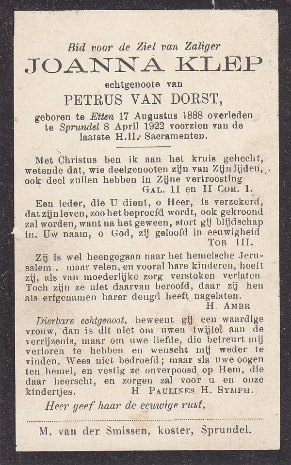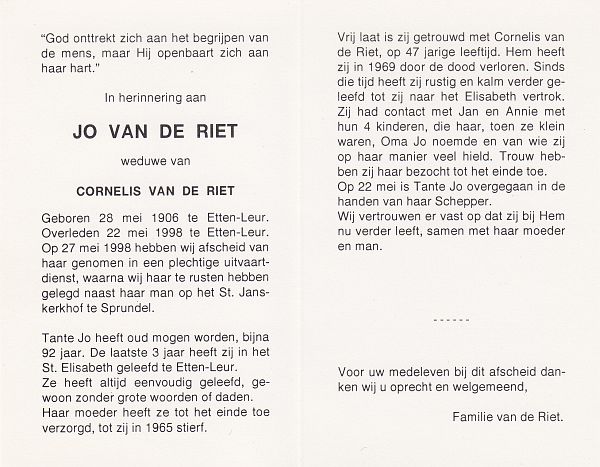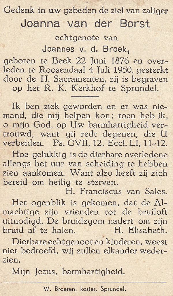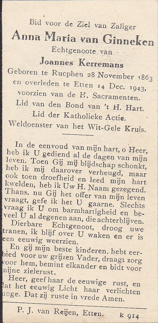 | Joanna Cornelia | | Aarts | 1914 | 1914 | |