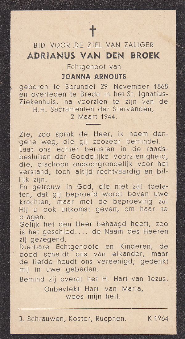 | Adrianus Jacobus Johannes | | Aarts | 1913 | 1964 | |