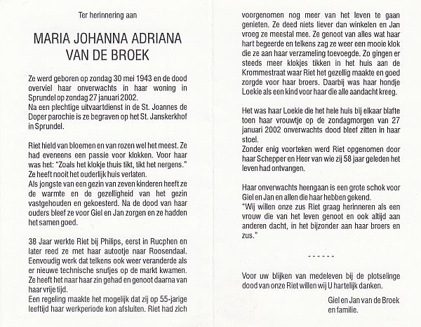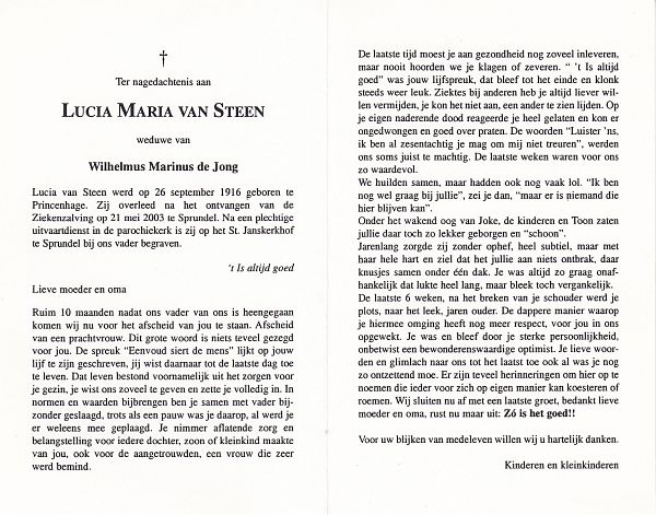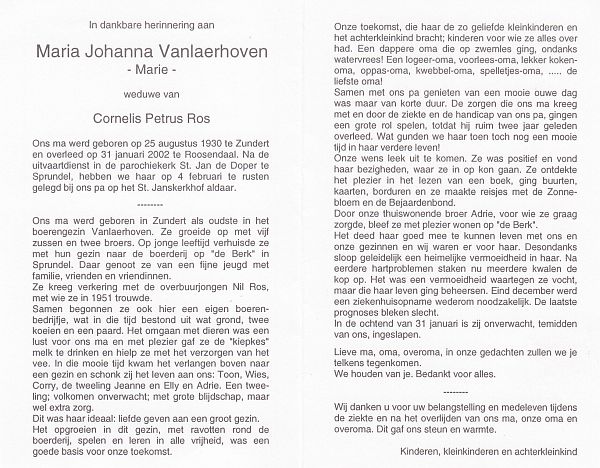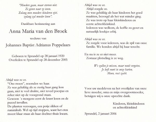 | Maria | van | Vlimmeren | 1906 | 1985 | |