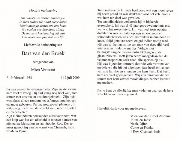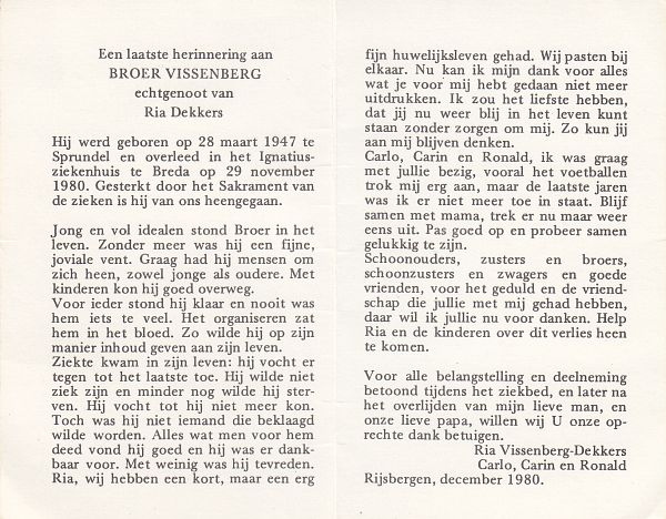 | Broer | | Vissenberg | 1947 | 1980 | |
