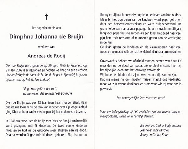 | Dimphna Cornelia | | Vissenberg | 1924 | 1990 | |