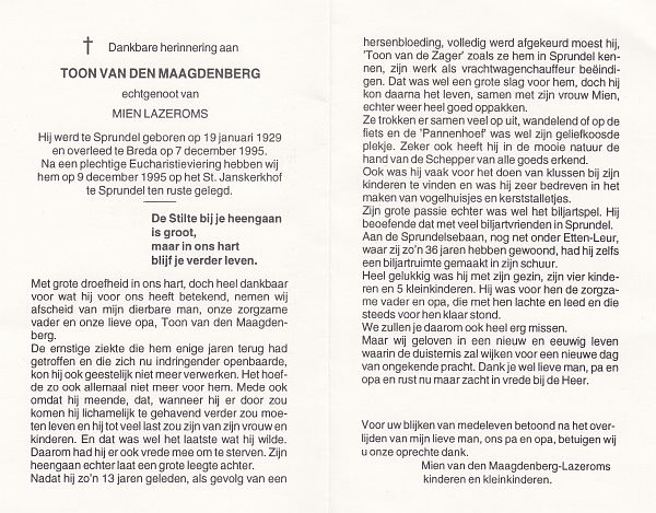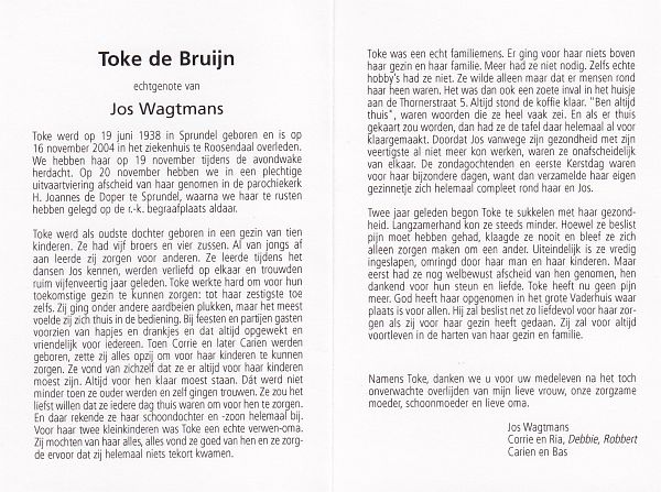 | Toon | | Wagtmans | 1920 | 1994 | |