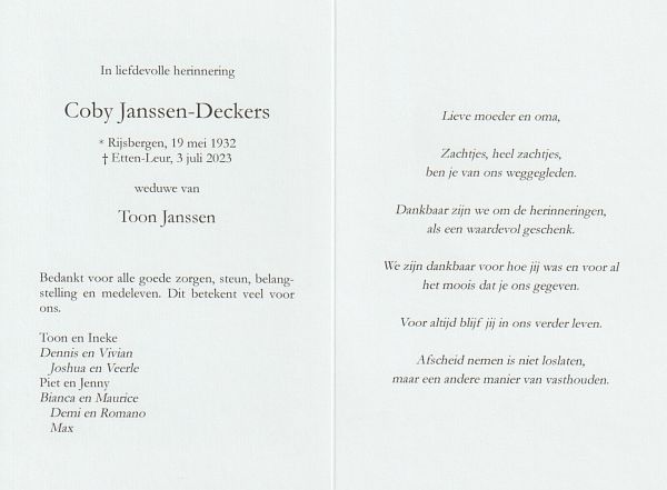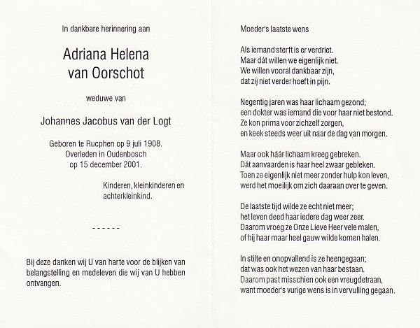 | Jaantje | van | Alebeek | 1901 | 1986 | |