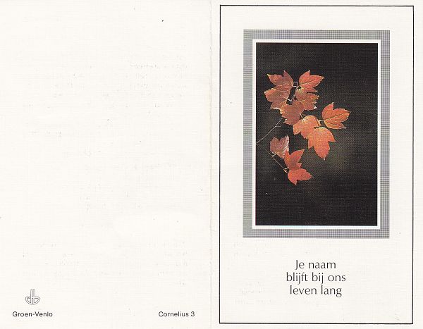 | Cornelius | | Vissenberg | 1915 | 1981 | |
