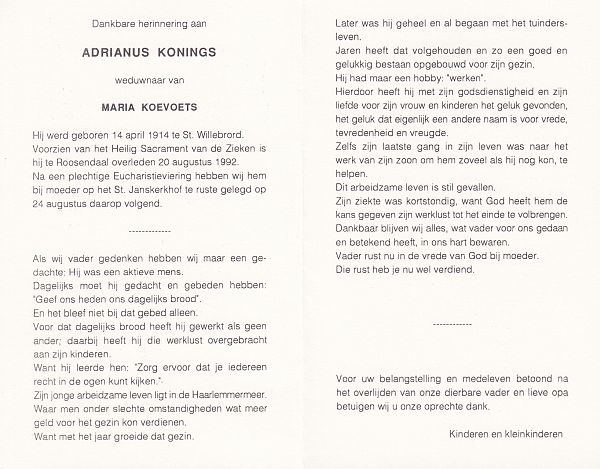 | Wilhelmus Adrianus | | Aarts | 1910 | 1987 | |