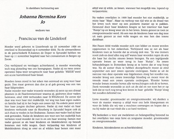 | Jans | | Woestenberg | 1920 | 2001 | |