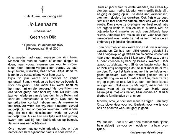 | Johanna | | Aarts | 1887 | 1969 | |