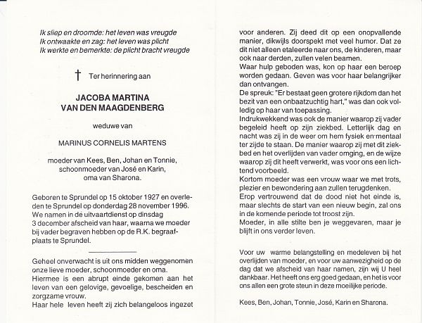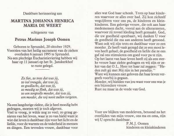 | Martina Johanna Henrica Maria | de | Weert | 1929 | 1995 | |