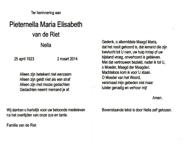 | Maria Petronella | | Aarts | 1914 | 1975 | |