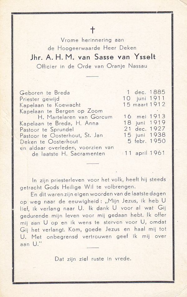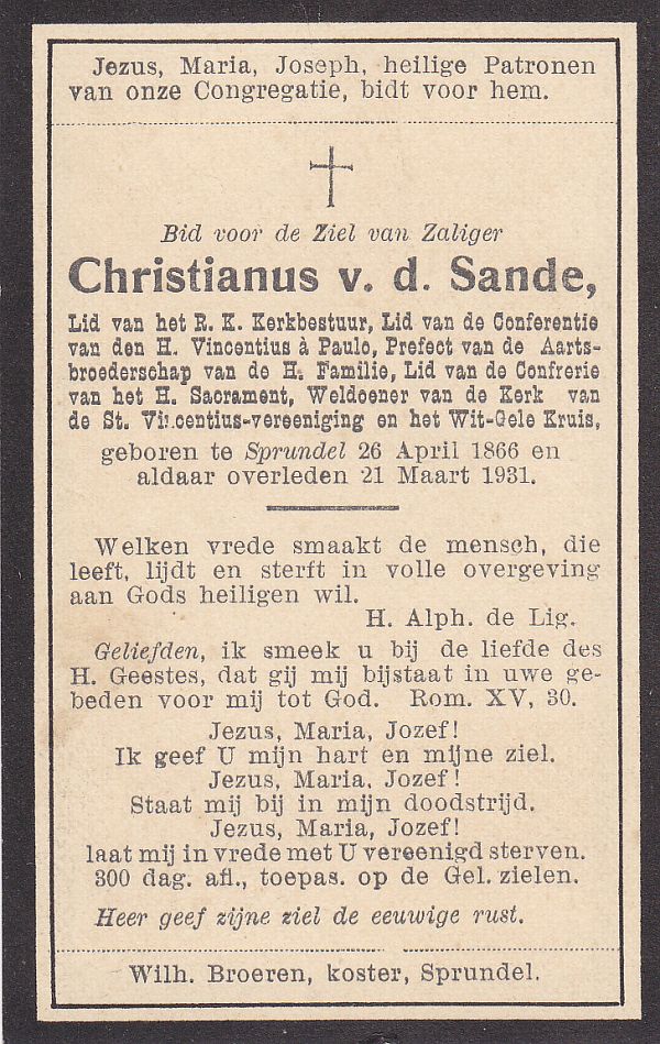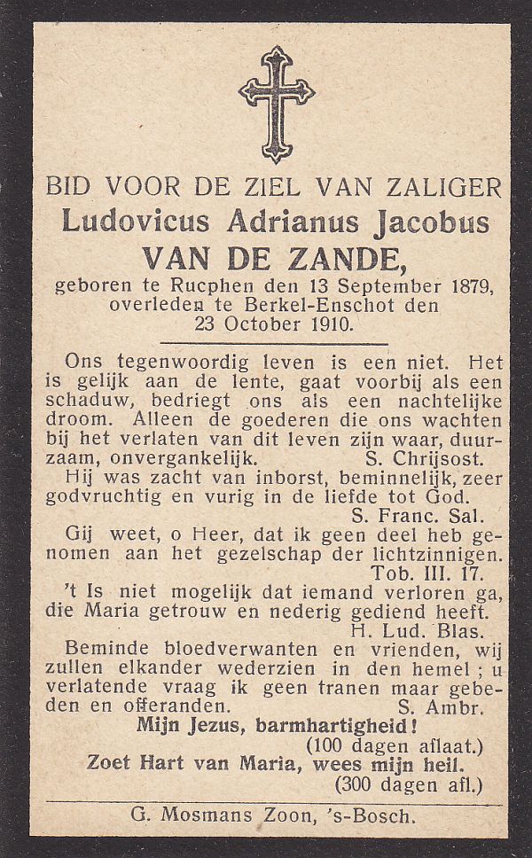 | Ludovicus Adrianus Jacobus | van de | Zande | 1879 | 1910 | |