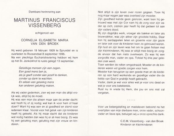 | Martinus Franciscus | | Vissenberg | 1929 | 1995 | |