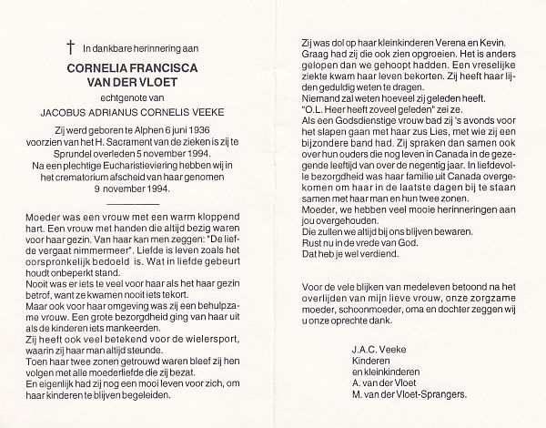 | Cornelia Francisca | van der | Vloet | 1936 | 1994 | |