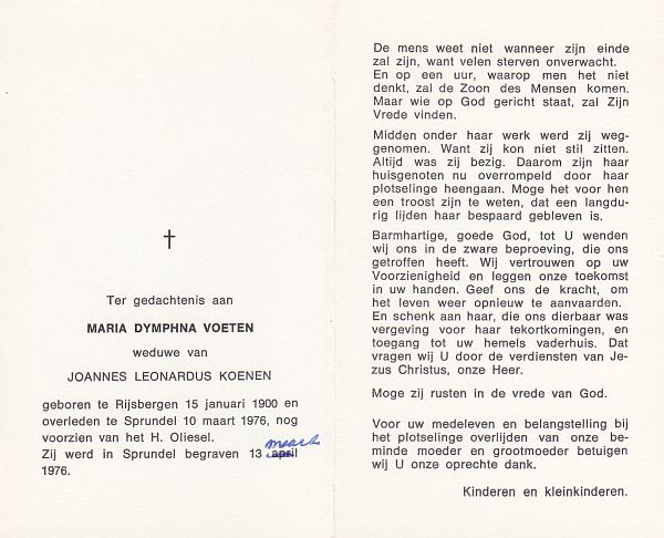 | Maria Dymphna | | Voeten | 1900 | 1976 | |