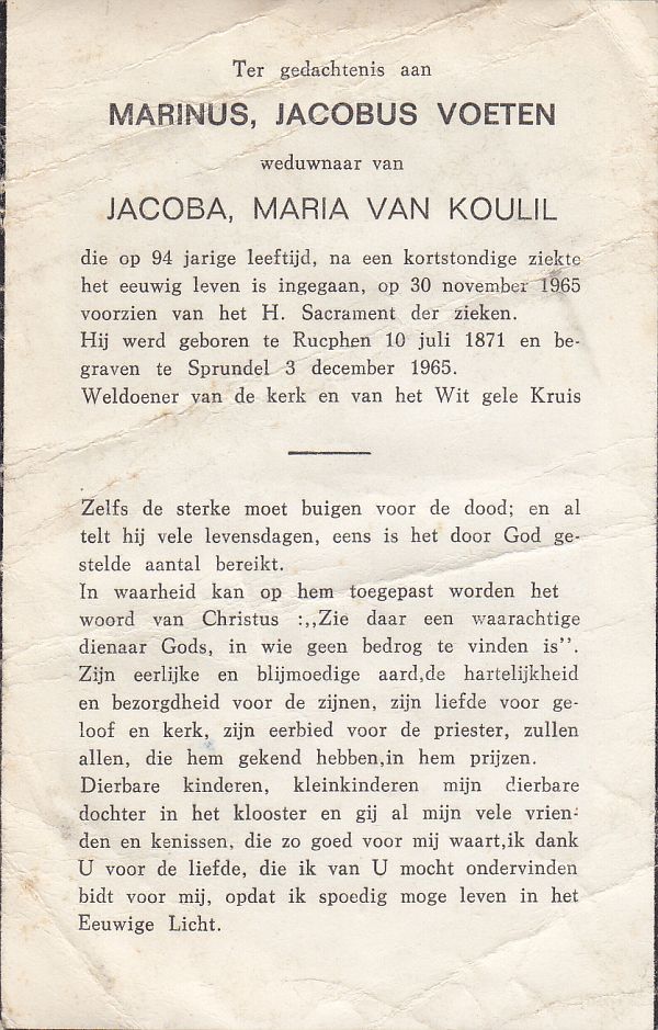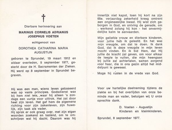 | Marinus Cornelis Adrianus Josephus | | Voeten | 1912 | 1977 | |