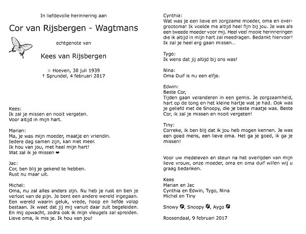 | Cor | | Wagtmans | 1939 | 2017 | |