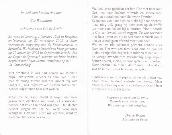 | Cor | | Wagtmans | 1946 | 2002 | |