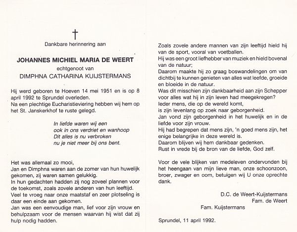 | Johannes Michiel Maria | de | Weert | 1951 | 1992 | |