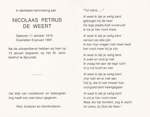 | Nicolaas Petrus | de | Weert | 1919 | 1997 | |