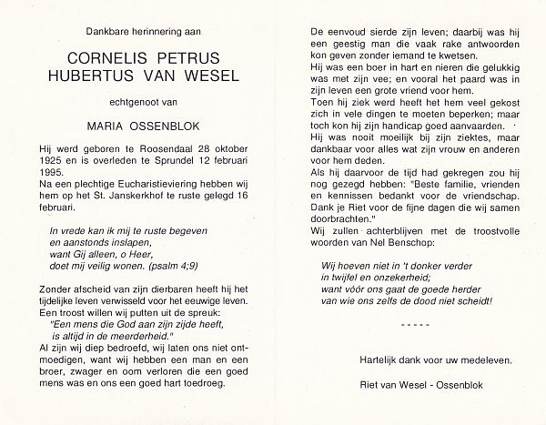| Cornelis Petrus Hubertus | van | Wesel | 1925 | 1995 | |