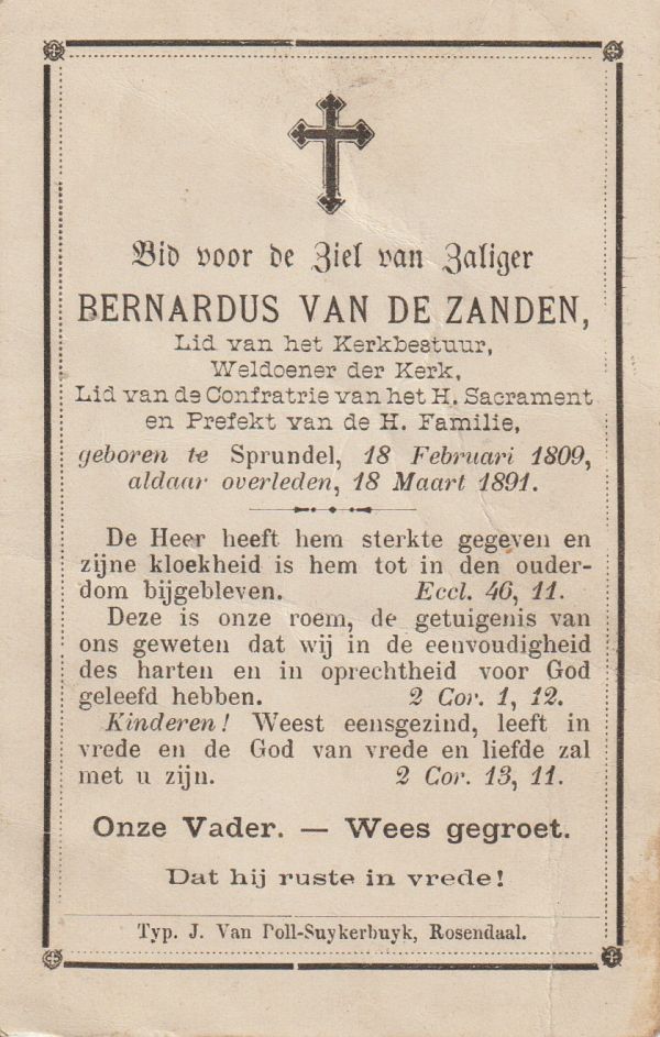 | Bernardus | van de | Zanden | 1809 | 1891 | |