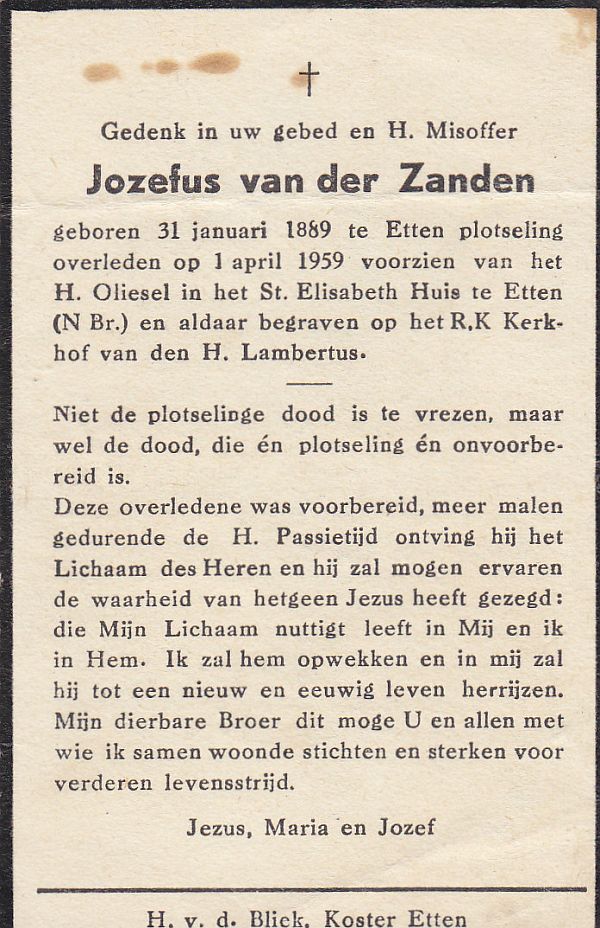 | Jozefus | van der | Zanden | 1889 | 1959 | |
