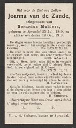 | Joanna | van de | Zande | 1840 | 1919 | |