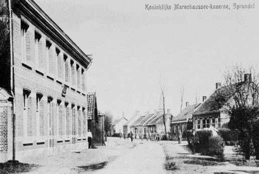 Links op deze foto staat de marechaussee-kazerne, op B31a woonden marechausse Cornelis Nieuwland met zijn vrouw en dochter, in het andere gedeelte van de kazerne (B31b), waren ook nog drie
